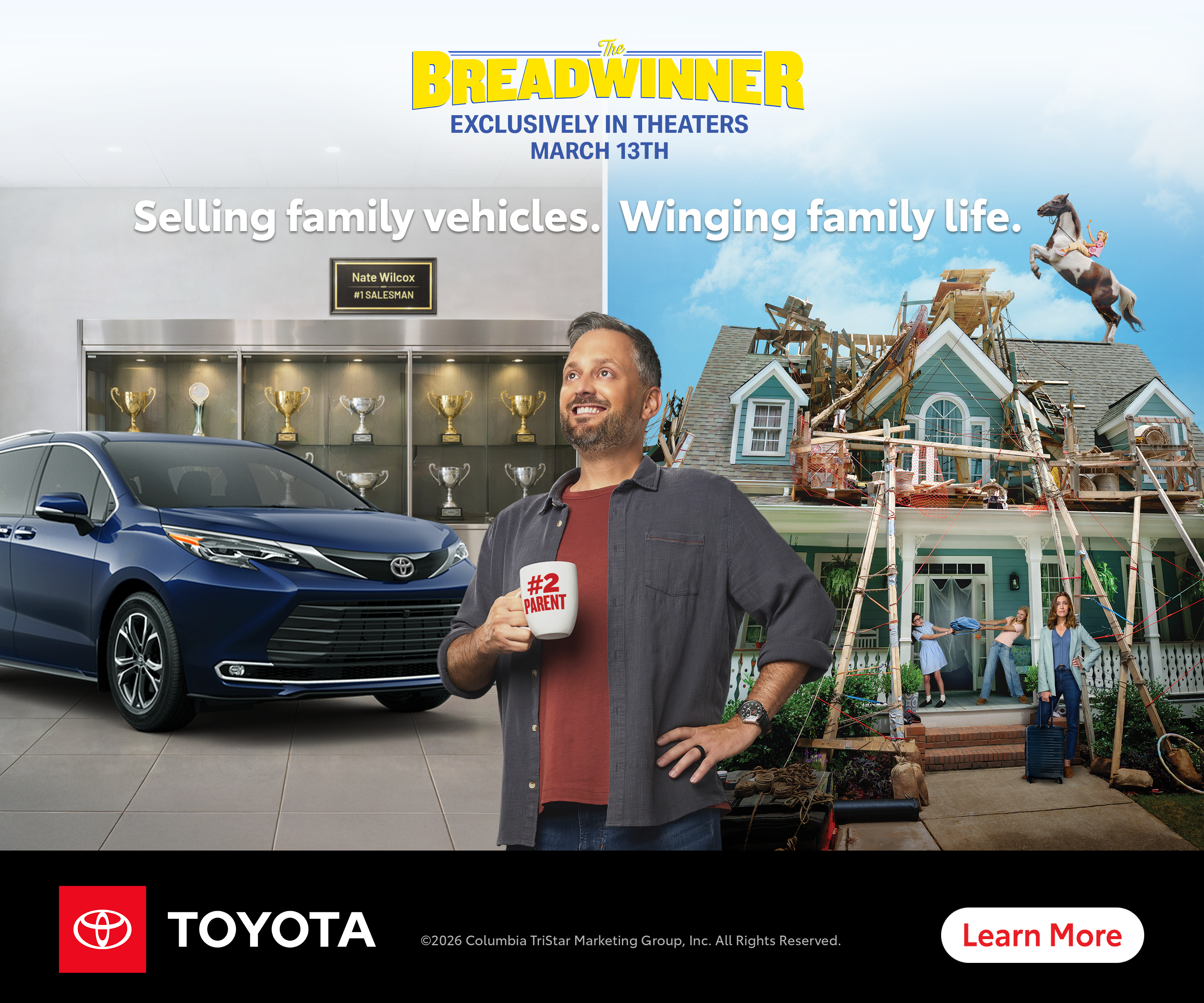 Mediaplacement believes in a story-first mindset when building intentional collaborations and brand integration. That’s why we are excited to officially kick off the latest product placement of Toyota North America and Sony Pictures Entertainment in TriStar Pictures’ upcoming family comedy The Breadwinner. This summer, experience Nate Bargatze’s feature-film debut alongside his trusty Toyota Sienna in a heartfelt comedy about modern family life.